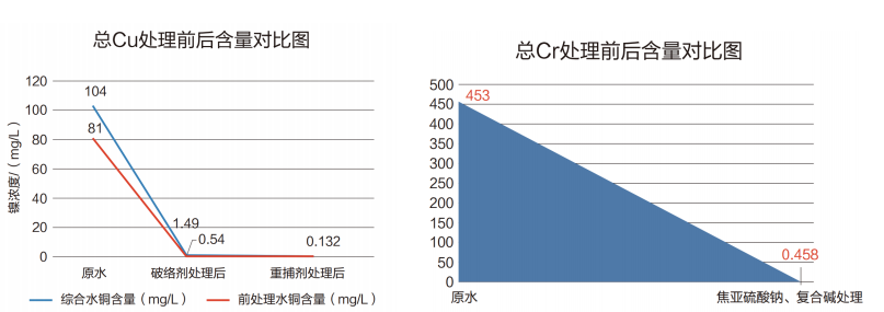 2.在生化系統前端投加清源牌破絡劑+重金屬捕捉劑相結合,確定低成本達標的廢水加藥處理方案。