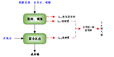 圖1-1聚合硫酸鐵生產工藝流程及產污節點圖