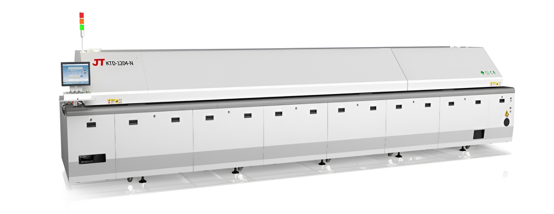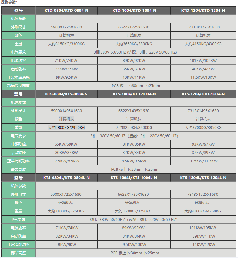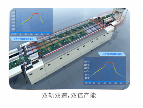 勁拓KT系列高端回流焊爐 ● 高產(chǎn)能低能耗,全新熱工學管理系統(tǒng),有效降低成本 ● 專業(yè)應對高速生產(chǎn)及高精密度PCB封裝工藝 ● 控溫能力強,高控溫精度 ● 超強快速升降溫能力 ● 全程氮氣定量可控,各溫區(qū)獨立閉環(huán)控制 ● 最新冷卻技術(shù),可選多區(qū)雙面冷卻 ● 新型二段式助焊劑回收系統(tǒng) ● 雙軌雙速,單機成本,雙倍產(chǎn)能,節(jié)能65%。