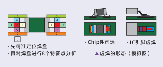 在精準定位焊盤的基礎上,利用特征組合算法,能對焊點虛焊進行有效檢出。