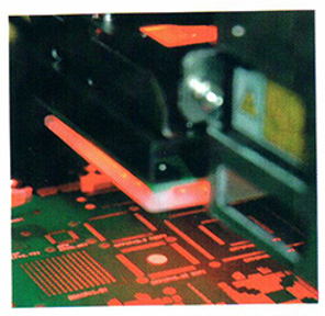貼裝頭上安裝了激光傳感器,從供料器吸取元件到 貼裝位置可 還可以對C S P ? 0 . 2 mm的引腳芯片